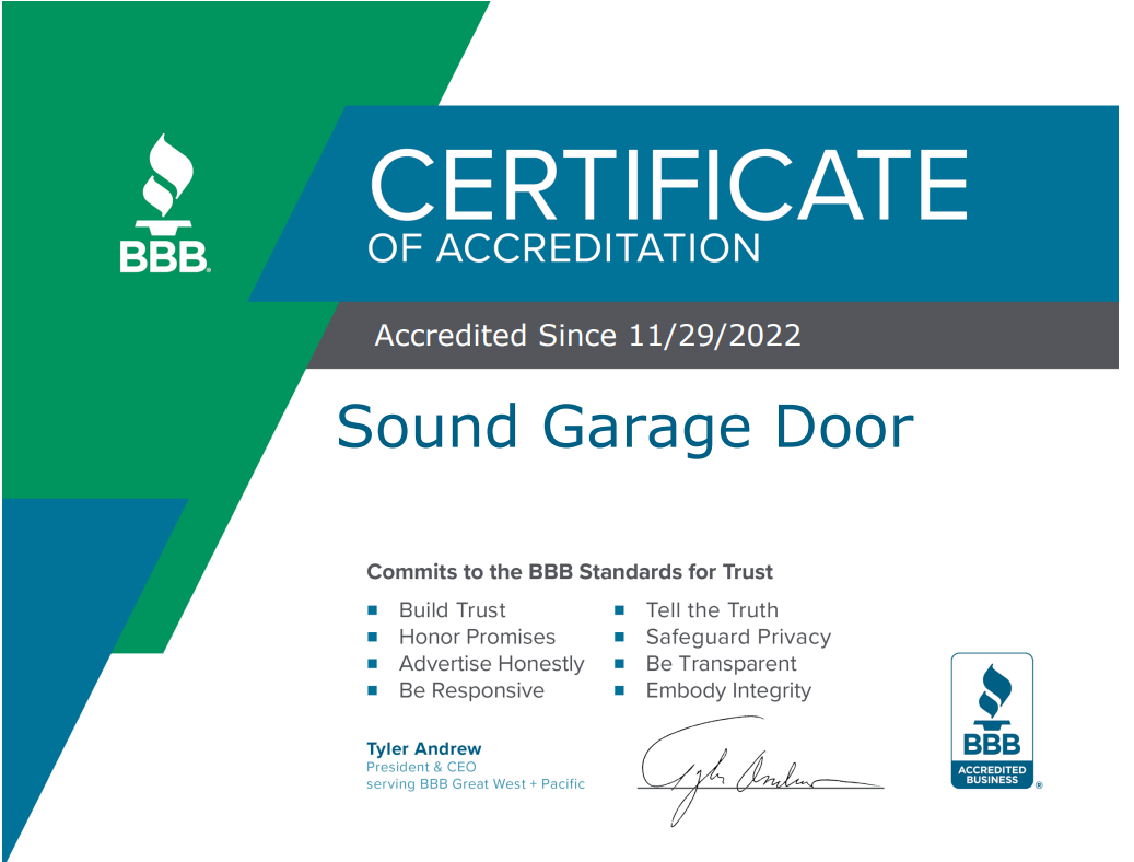 At Sound Garage Door, we take pride in providing exceptional garage door services to our customers. We would be grateful if you could share your thoughts about our business with others. Your feedback helps us improve and helps others make informed decisions. Please take a moment to leave a review of Sound Garage Door and let others know what you think.